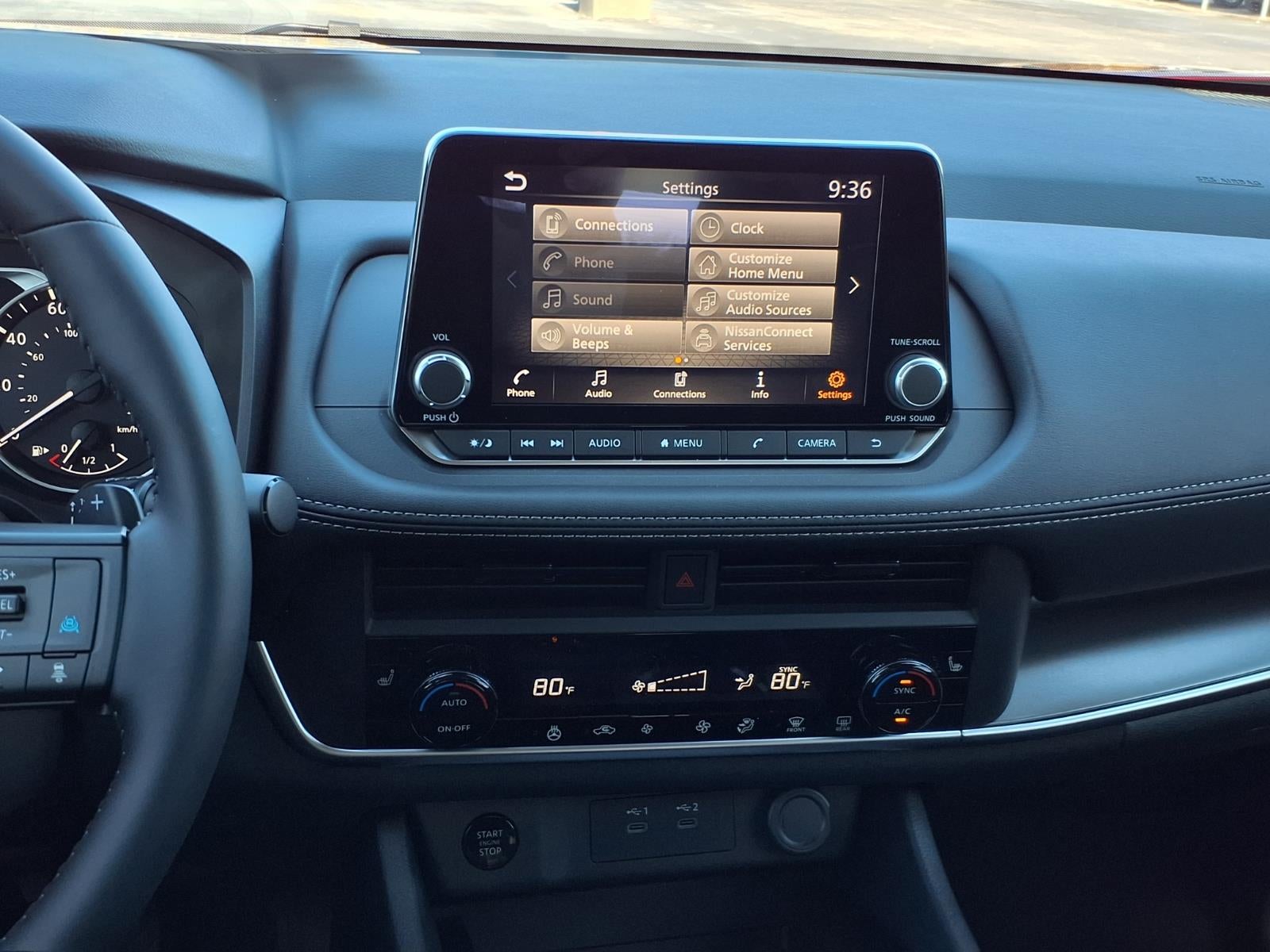 - Radio: AM/FM NissanConnect -inc: 6 speakers plus 2 tweeters, Apple CarPlay, Android Auto, 8" color touch screen display, Bluetooth®, 2 front USB type-C, Wi-Fi hotspot and NissanConnect Services powered by SiriusXM