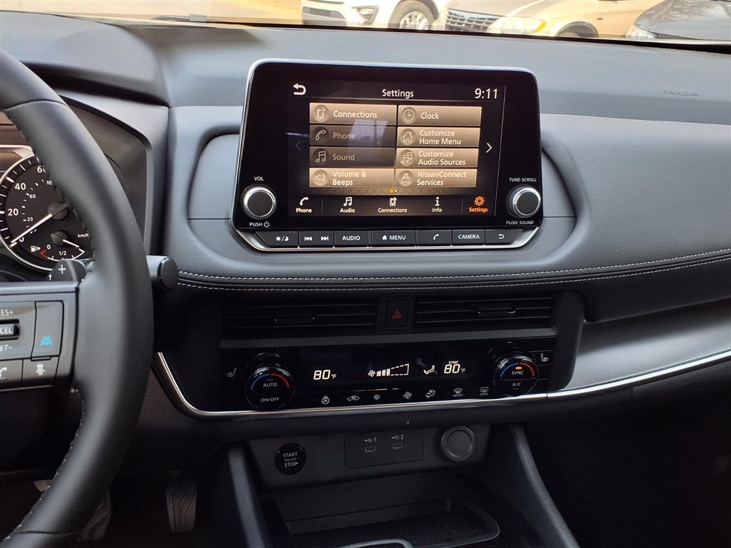 - Radio: AM/FM NissanConnect -inc: 6 speakers plus 2 tweeters, Apple CarPlay, Android Auto, 8" color touch screen display, Bluetooth®, 2 front USB type-C, Wi-Fi hotspot and NissanConnect Services powered by SiriusXM