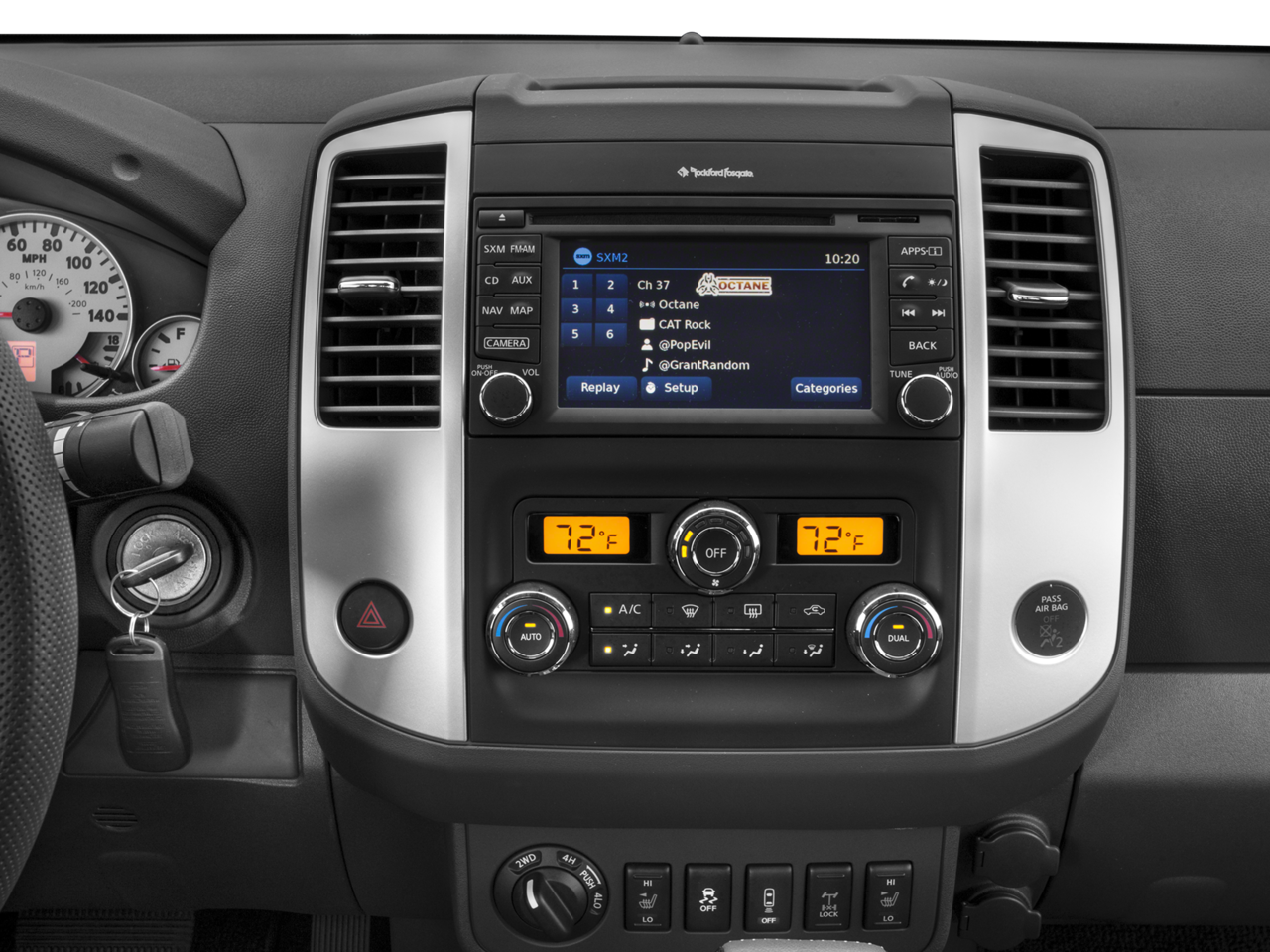 - Radio: Rockford Fosgate Premium Audio System -inc: 10 speakers w/subwoofer, NissanConnect w/navigation and NissanConnect Apps, 5.8" color touch screen display, radio data system, auxiliary input jack, Nissan voice recognition for navigation and audio, SiriusXM Traffic and SiriusXM Travel Link
