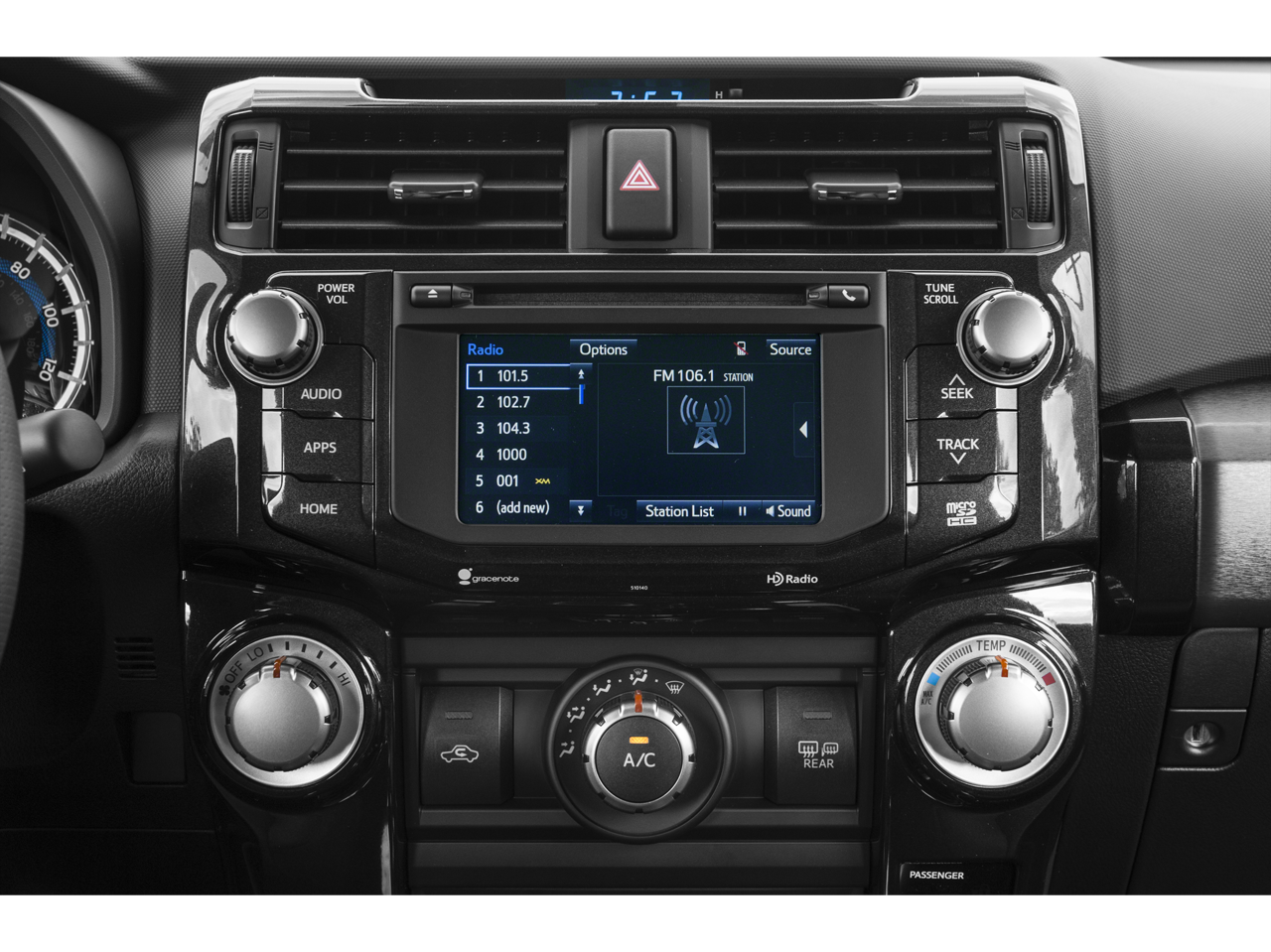 - Radio: Entune Premium Audio w/Navigation -inc: Entune App Suite, 6.1" high-resolution touch-screen w/split-screen display, AM/FM cache radio, HD Radio, CD player, 8-speakers, auxiliary port, USB 2.0 port w/iPod connectivity and control, advanced voice recognition, hands-free phone capability, phone book access and music streaming via Bluetooth® wireless technology, Siri Eyes Free, HD Radio predictive traffic and Doppler weather overlay and SiriusXM satellite radio w/3-month all access trial Access to Entune services is subscription free. See toyota.com/entune for details.