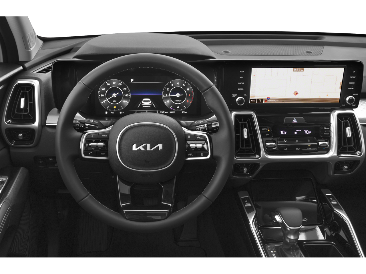 Never get into a cold vehicle again with the remote start feature on this unit. The vehicle comes equipped with Android Auto for seamless smartphone integration on the road. You'll never again be lost in a crowded city or a country region with the navigation system on this unit. Apple CarPlay: Seamless smartphone integration for the Kia Sorento - stay connected and entertained on the go! The vehicle features a hands-free Bluetooth® phone system. This vehicle utilizes collision avoidance to enhance safety by automatically detecting and evading potential accidents. Lane Keep Assist in this 2023 Kia Sorento helps maintain safe driving by gently steering to stay within the lane. Protect this 2023 Kia Sorento from unwanted accidents with a cutting edge backup camera system. This model has automated speed control that adjusts to maintain a safe following distance, enhancing highway driving convenience. The leather seats in this mid-size suv are a must for buyers looking for comfort, durability, and style.